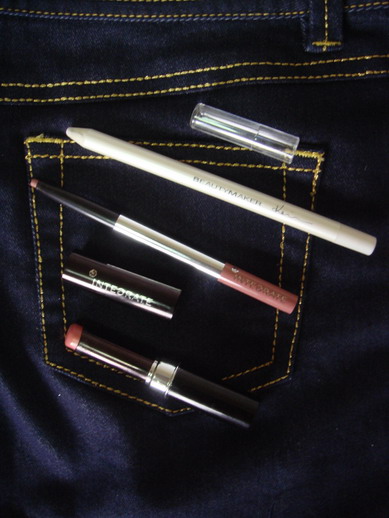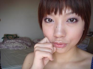 1. 使用白色眼線筆 or 唇線筆 輕描在 唇峰 & 下唇下方 再使用手指小暈一下