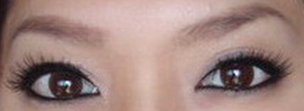 4. 刷上 睫毛膏 後 再戴上 交叉七假睫毛