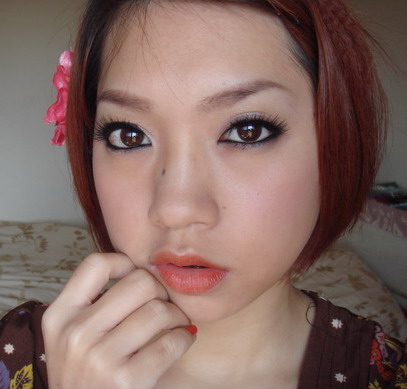 那我會建議她 不妨試試 " 紅偏橘 " 的口紅顏色