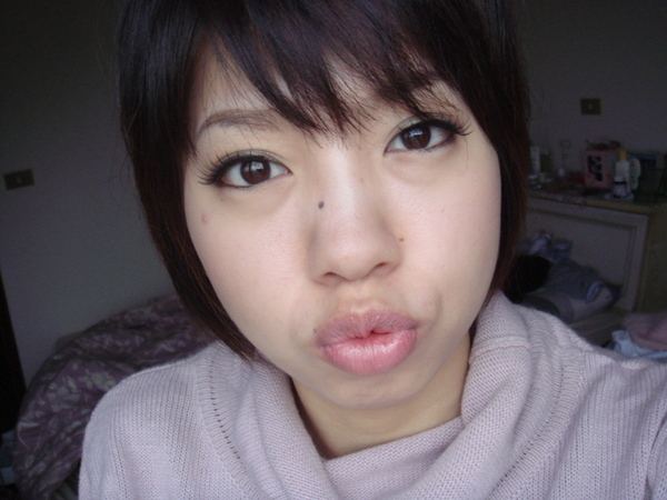 今天的眼妝 搭配了昨天所買的假睫毛(交叉濃密款)