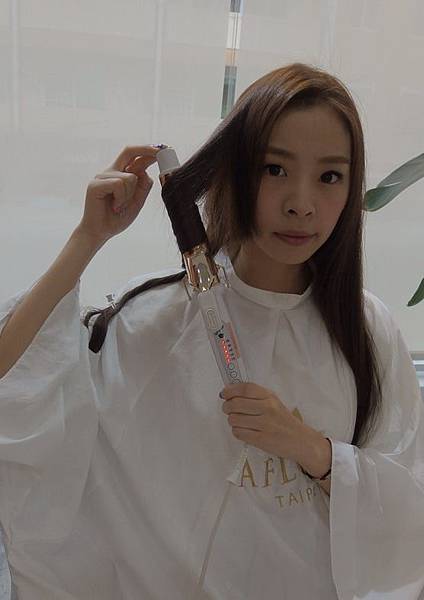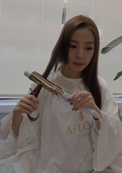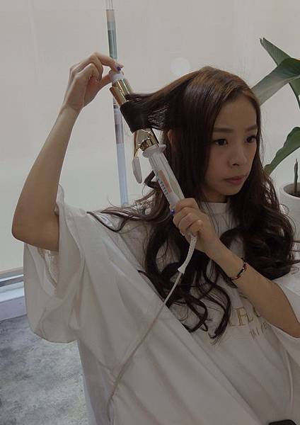 由於妙妮的頭髮長度比較長 因此今天選擇 32mm 的電棒來上捲 記得溫度要調到200左右唷