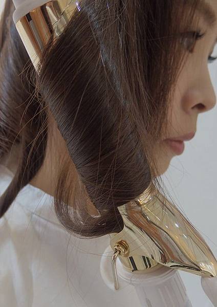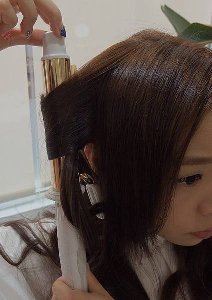 YUKO老師 解釋說 : " 這邊如果再將髮尾捲入電棒的話 髮尾部份會太過乾燥唷 "