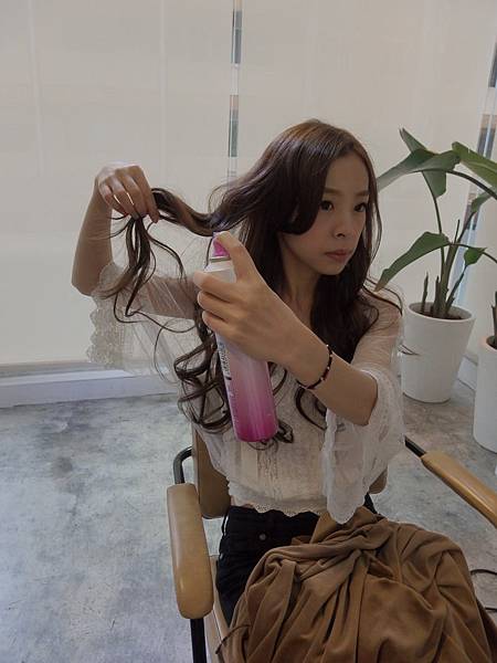 將頭髮拉起來並噴上定型液